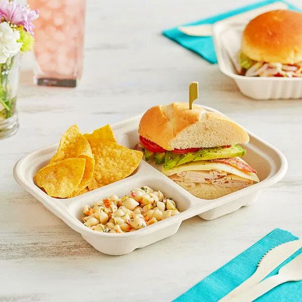 Eco-friendly bagasse plates made from natural sugarcane fiber. Strong, compostable and perfect for hot or cold meals.