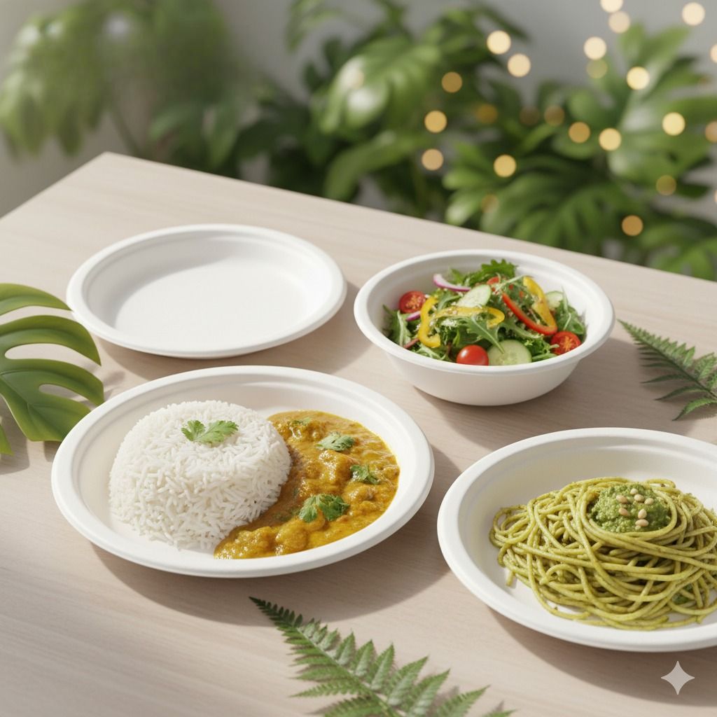 Premium bagasse plates, bowls and containers made from sugarcane fiber. Strong, leak-proof and fully compostable for modern food service.